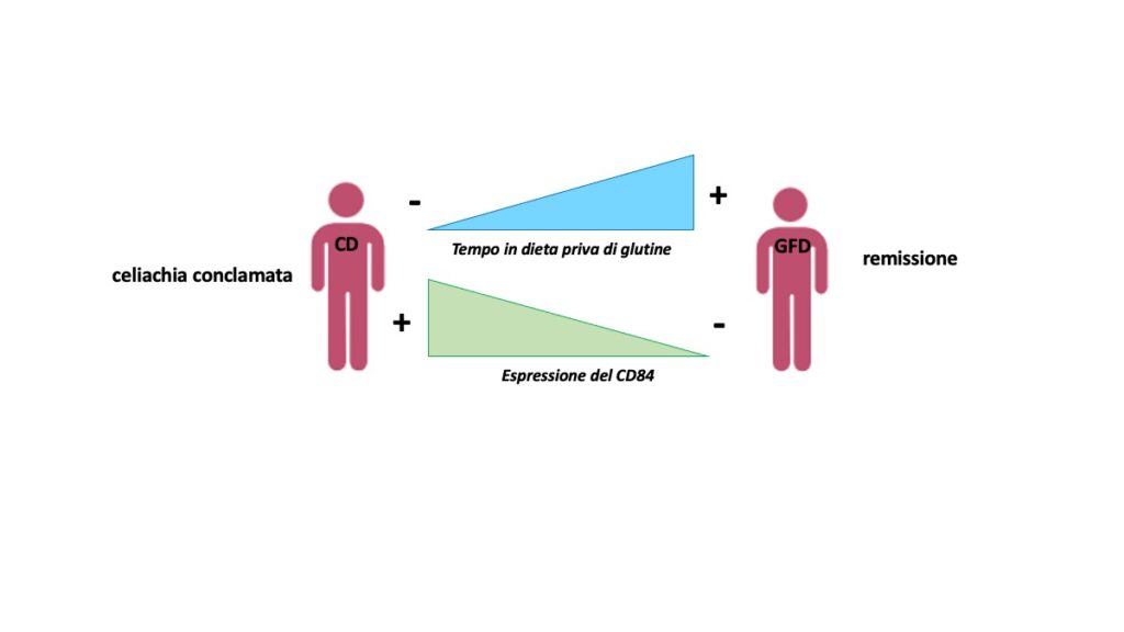 La conferma della diversa espressione del CD84 tra pazienti affetti da celiachia conclamata e pazienti in remissione, può essere identificativa  nel  monitoraggio dello svolgimento  di una corretta terapia, segnando appunto  il passaggio dalla fase acuta della malattia alla remissione. Il suo coinvolgimento  nel processo di presentazione dell’ antigene  potrebbe essere associato all’amplificazione della risposta immunitaria al glutine in termini di efficacia e potenza.